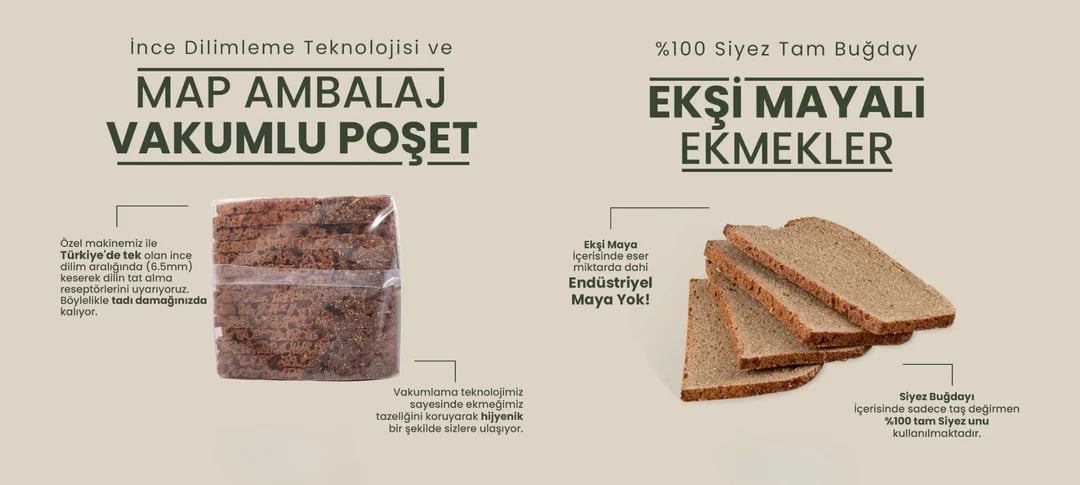 Piyasada bulunan sıradan tam buğday ekmeğinden sıkıldın mı? İşte sana gerçek tam buğday ekmeği! Doğal ve sağlıklı beslenme arayışında olanlar için özel olarak ürettiğimiz gerçek tam buğday ekmeği, kepeği ve ruşeymi içerisinde katkısız taş değirmende öğütülmüş tam buğday unundan geleneksel ekşi maya ile soğuk fermantasyona bırakılarak üretilmiştir. Hemen dene sen de farkı hisset!